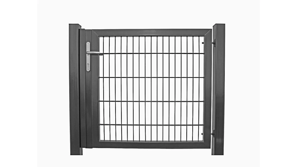 Das Tor lässt sich durch Augenschrauben beliebig verstellen und um 180° öffnen.