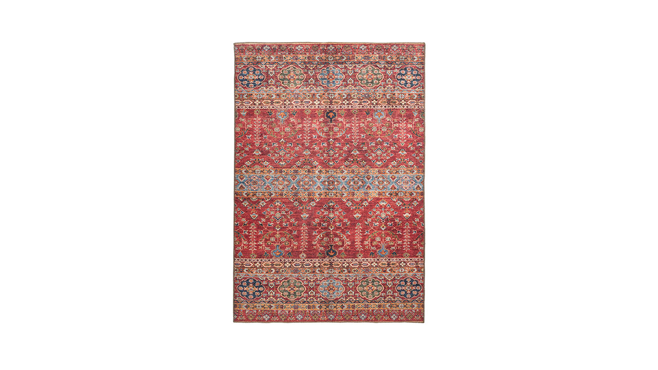 Das stilvolle Print-Design dieses Flachflorteppichs kann mit seinem Vintage-Charakter im orientalischen Stil auf ganzer Linie punkten. Das Design besticht durch attraktive charakteristische Verwaschungen, eine sommerliche Farbgebung und orientalische Elemente. Verleihen Sie Ihrem Zuhause einen fernöstlichen Look, indem Sie den stilvollen Teppich mit farbenfrohen Kissen, edlen Wohnaccessoires und glanzvollen Dekoartikeln kombinieren. Besonders gut eignen sich Materialien in Gold, Bronze und Silber oder edle Variationen in Samt, Seide oder Leder. Kreieren Sie ein prunkvolles Gesamtambiente mit stilvollen Highlights, sodass Sie und Ihre Besucher sich rundum wohlfühlen können.