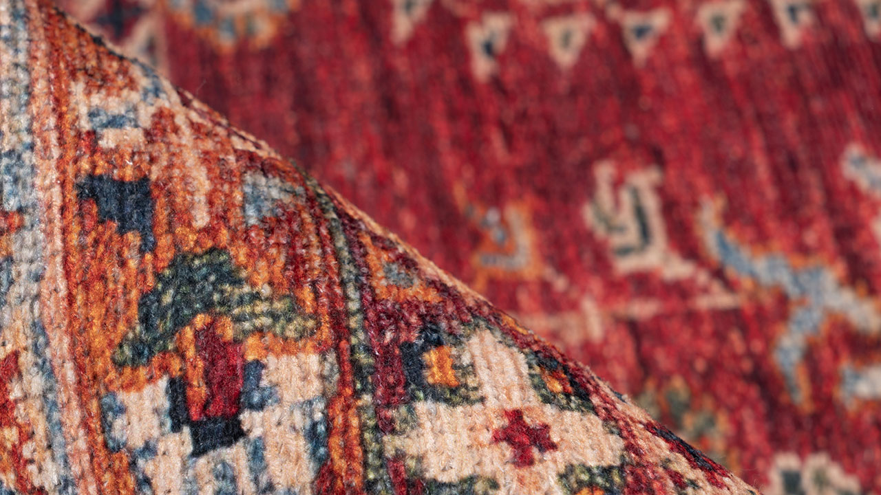 Dank seines sehr flachen Flors ist der Teppich besonders leicht und kann einfach umplatziert werden. Das Material macht die Oberfläche pflegeleicht. Verstärkt ist der Flor durch einen robusten Rücken aus Baumwolle. In Räumen mit Fußbodenheizung kann der Teppich ebenso platziert werden wie in Räumen mit herkömmlichen Heizkörpern.