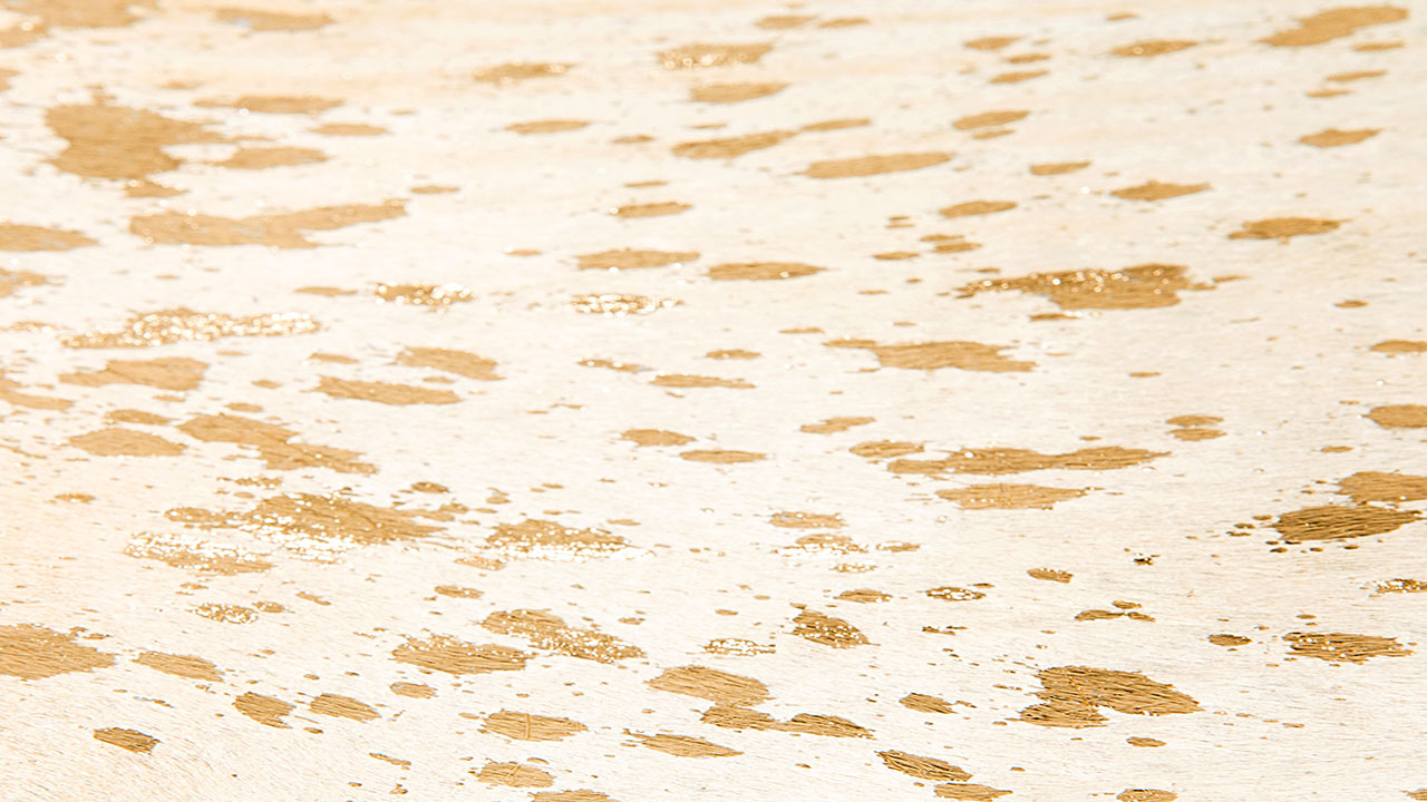 Dieser Naturteppich wurde aus echtem Rindsleder gefertigt und erhält seinen besonderen Charakter durch die moderne Einfärbung, edle metallische Akzente, stilvolle Ausstanzungen sowie die natürliche Form. Schlichte, minimalistisch eingerichtete Räume können durch dieses Teppichmodell besonders gut aufgewertet werden. Durch das leichte Gewicht des flachen Flors kann das Modell nicht nur als Bodenbelag, sondern auch als Wandteppich oder Sitzauflage verwendet werden. So können Sie Ihr Zuhause ganz nach Ihren Vorstellungen einrichten und den Teppich in seiner Nutzung flexibel variieren. Besonders gut passt das Leder zu anderen natürlichen Materialien wie Holz oder Rattan. Der Gemütlichkeitsfaktor wird durch die Kombination mit schönen Kissen oder Sitzkissen aus Naturmaterialien verstärkt und bringt eine Wohlfühlatmosphäre in den gesamten Raum.