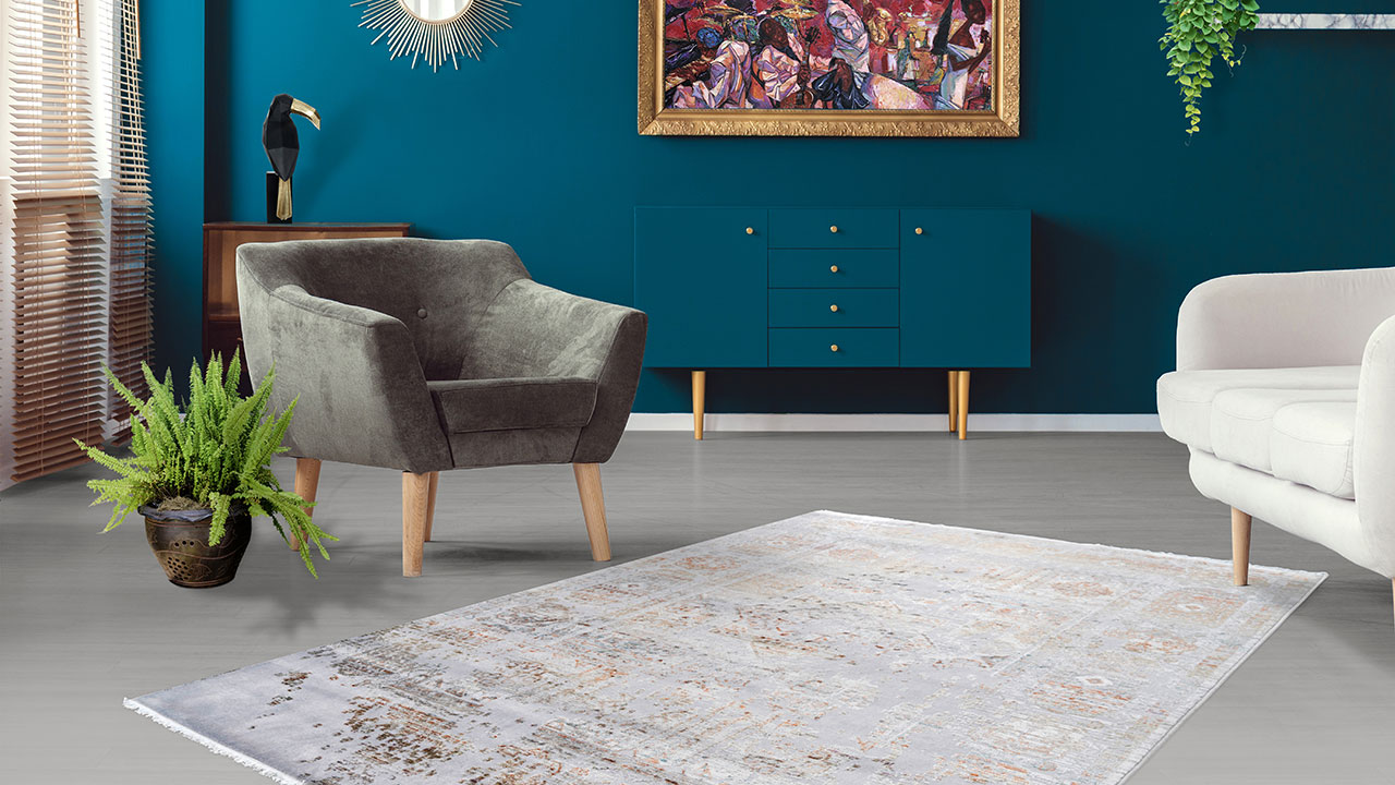 Setzen Sie mit diesem Teppich Akzente. Der attraktive Vintage-Look kann sich durch die Kombination mit der modernen Farbgestaltung in modernen und in klassischen Einrichtungen sehen lassen. Er harmoniert ideal mit Ihrem Mobiliar und sorgt für einen schönen Vintage-Charakter in Ihrem Zuhause. Mittig im Raum platziert wird der Flachflorteppich sofort zum Blickfang und schafft ein ganz neues Raumklima. Integriert in eine Wohnlandschaft bringt er ein Gefühl von Wärme und Komfort mit sich, das durch die natürlichen, farblich angepassten Fransen an den Enden verstärkt wird.