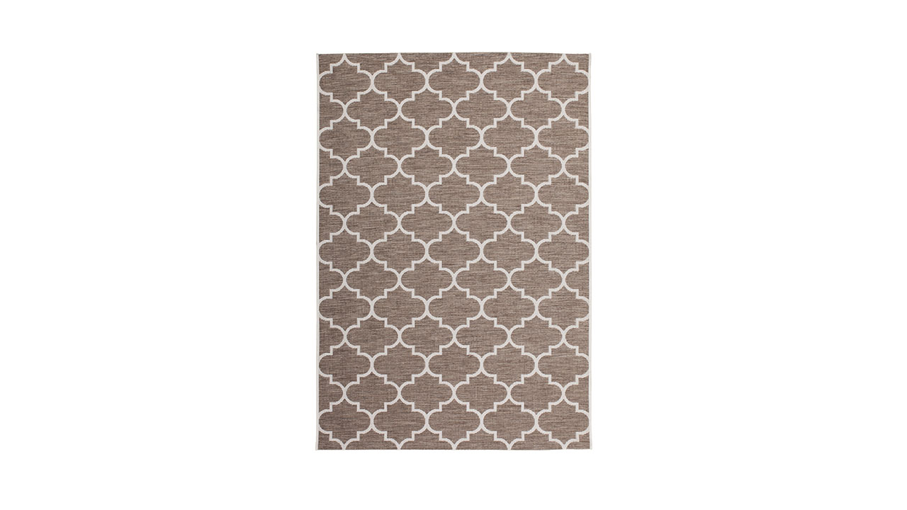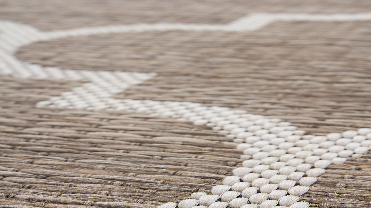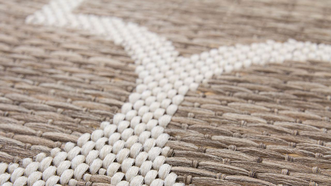 Der Flachflorteppich in Flecht-Optik mit trendigem Design setzt als absoluter Trendsetter setzt mediterrane Akzente in jeden Wohnbereich. Das Design unterstreicht jedes moderne Flair. Der natürliche Charakter zeugt von einem ganz eigenen Charme. Die konstrastreichen Farben des Flachflorteppichs verschmelzen optisch nahtlos mit seiner Umgebung. Die Naturoptik verleiht neue Kraft. Mit dem speziellen, flach gewebten Flor gestaltet sich dieser Flachflorteppich in Sisal-Optik zu einem alltagstauglichen Allrounder, der den unterschiedlichsten Wohneinrichtungen einen passenden Schliff verleiht und zudem innen und außen ausgelegt werden kann. Hohen Belastungen hält der Indoor-/ Outdoor-Teppich problemlos stand. Die dezent abgestuften Farben passen sich jeder Umgebung an. Der Teppich kann als "Eyecatcher" im Wohnzimmer oder als Vorleger im Flur sowie als Hingucker auf der Terrasse oder dem Balkon eingesetzt werden. Der robuste Flor steht in direktem Verhältnis zu seinem geometrischen Muster und unterstreicht den starken Charakter dieses Flachflorteppichs deutlich. Der Teppich ist ringsum durch eine Kettelung eingefasst, der jegliches Ausfransen verhindert. Feuchtigkeit hat keine Chance. Die Vorteile liegen auf der Hand: Günstig, top-modern, widerstandsfähig und pflegeleicht!