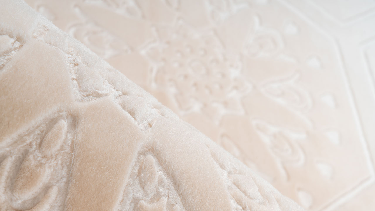 Mit diesem Teppichmodell holen Sie sich ein ganz besonderes Highlight nach Hause. Der einfarbige Kuschelflor ist mit einem Prägedruck versehen, der für eine zweifarbige Wirkung sorgt und gleichzeitig einen 3D-Effekt mit sich bringt. Durch die niedrigeren geprägten Fasern entstehen Höhen und Tiefen in der Oberfläche, die dem Teppich seine besondere Optik verleihen. Rundherum ist der Teppich gekettelt, was ein Ausfransen verhindert und gleichzeitig das Gesamtbild abrundet.