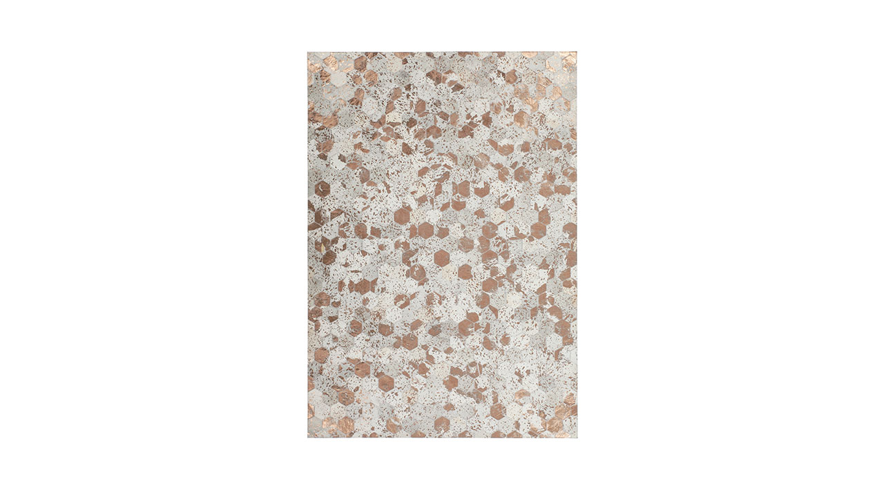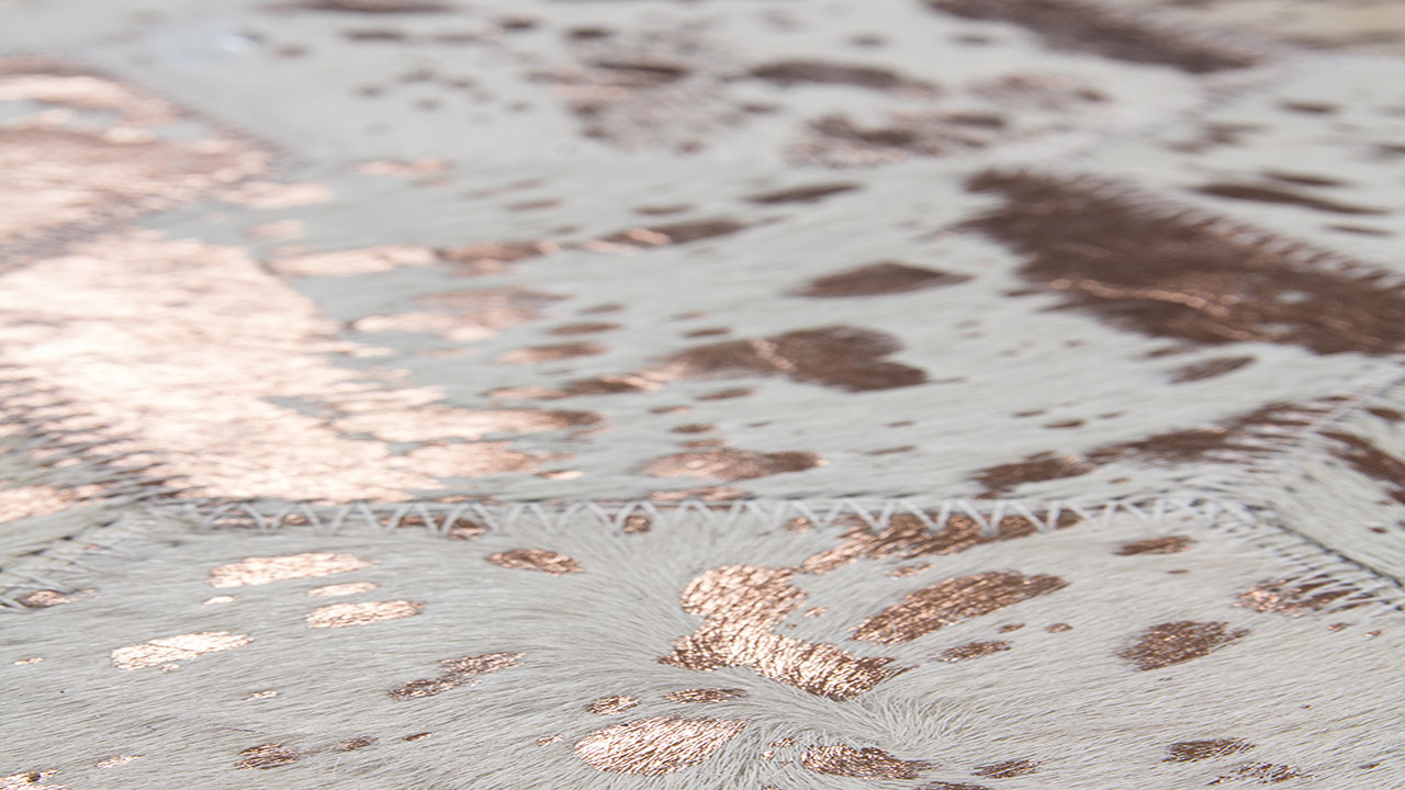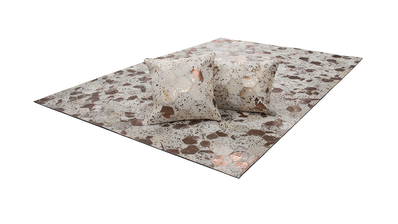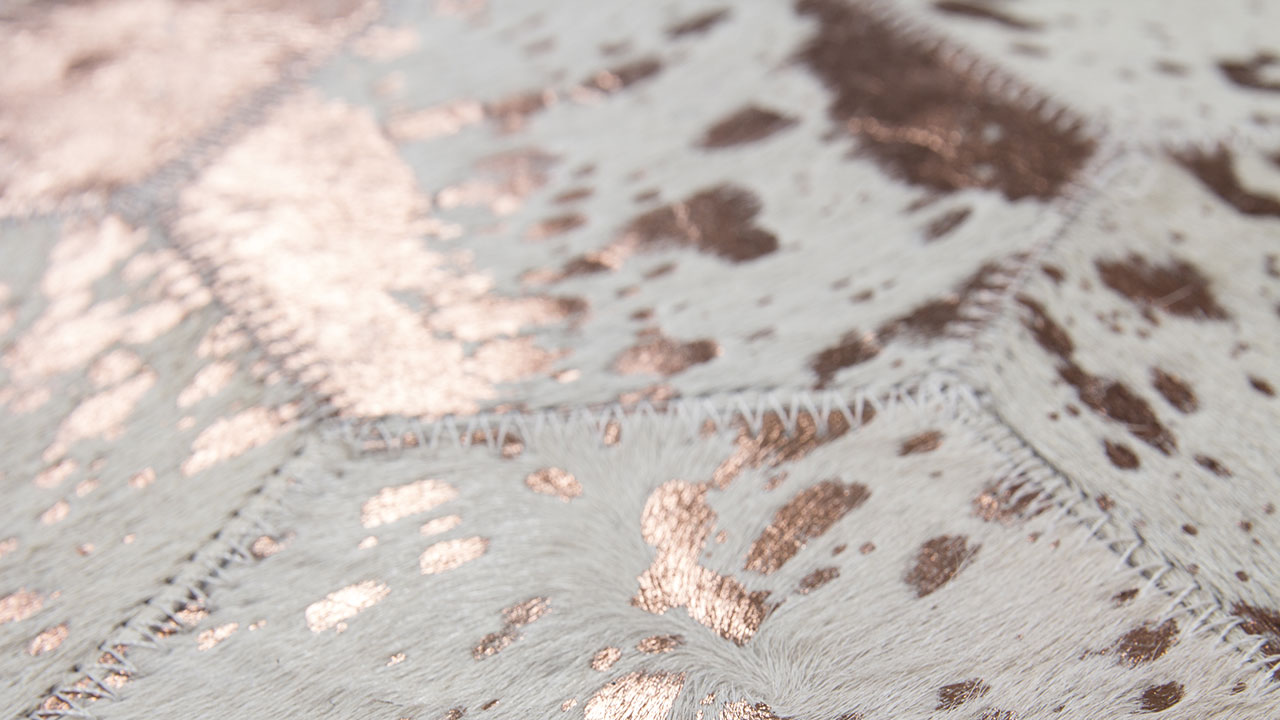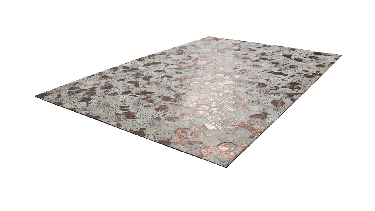 Der wunderschöne Lederteppich mit eingearbeiteten Applikationen aus metallischer Folie rundet jeden edlen Einrichtungsstil gekonnt ab. Der hochwertige Edel-Teppich aus 100 % Leder überträgt einen individuellen Touch auf seine Umgebung und erzeugt ein ganz besonderes Flair. Von Hand gefertigt ist jeder einzelne Lederteppich ein Unikat. Die Verwendung von edlen Naturmaterialien und die hochwertige Verarbeitung sorgen für ein dynamisches Aussehen und machen jeden Teppich einzigartig, denn bei Naturprodukten kann es in Form, Farbe und Muster zu Abweichungen von bis zu 30 % kommen. Das natürliche Fell kann nach einiger Zeit und bei hoher Beanspruchung gegebenenfalls an Haaren verlieren. Ebenso könnte sich die Metallicfolie unter Umständen ablösen. Dies ist dem Naturprodukt und der Beschaffenheit des Fells geschuldet und kein Produktionsfehler.