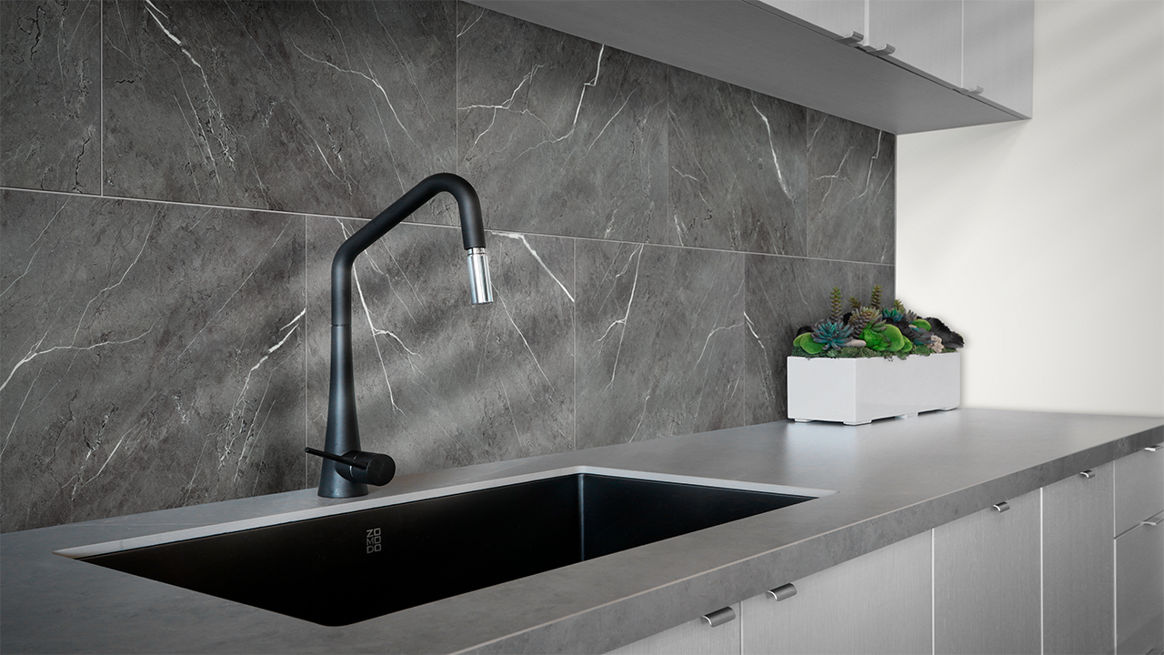 Verkleben Sie Ihre Küchen- oder Duschrückwand mit der 100% wasserdichten StrongWall von planeo schnell und direkt über alte Fliesen ohne Trocknungszeit. An unebenen Wänden lässt sich die Wandfliese auch auf eine Unterkonstruktion einfach und bequem nageln oder heften. Durch das Nut und Feder-Verbindungsystem entfällt umständliches Fliesenschneiden oder Verfugen mit Zement.
